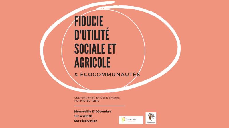 La communauté de l’Habitat de l’hêtre organise une Formation : Fiducie d’utilité sociale et agricole & écocommunautés qui aura lieu le 13 décembre à 18h en ligne.