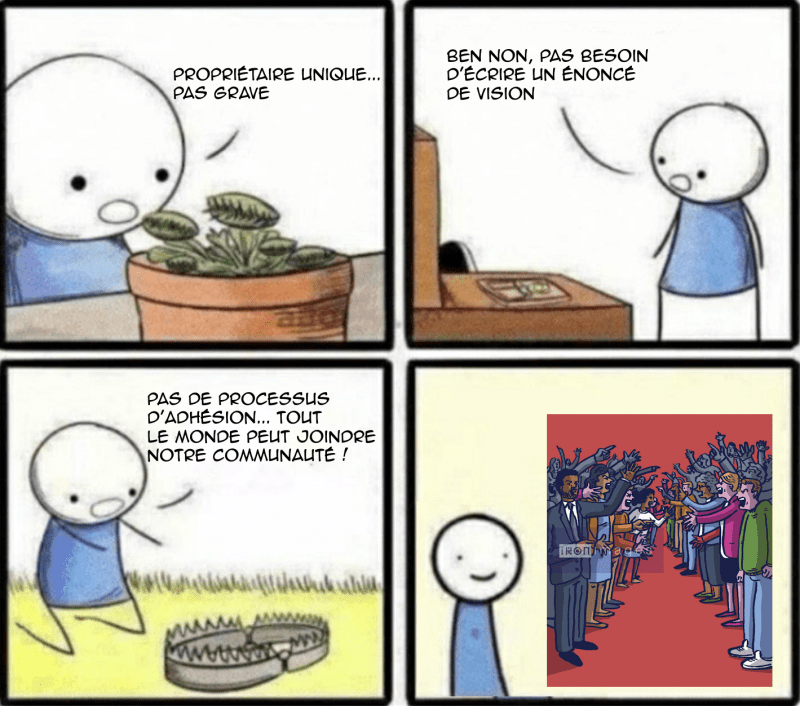 Tout ça, c’est parfait si tu as l’intention de bientôt démarrer un projet de vie collective, mais si tu veux joindre un groupe déjà existant, ou en maintenir un ou même juste découvrir le mode de vie, ce livre n’est pas fait pour toi. Il est beaucoup trop technique et complexe. T’as pas besoin de connaître la différence entre une association à but non lucratif de type 501(c)3 ou 501(c)2 ou 501(d) qui sont des personnes morales qui n’existent même pas au Québec.